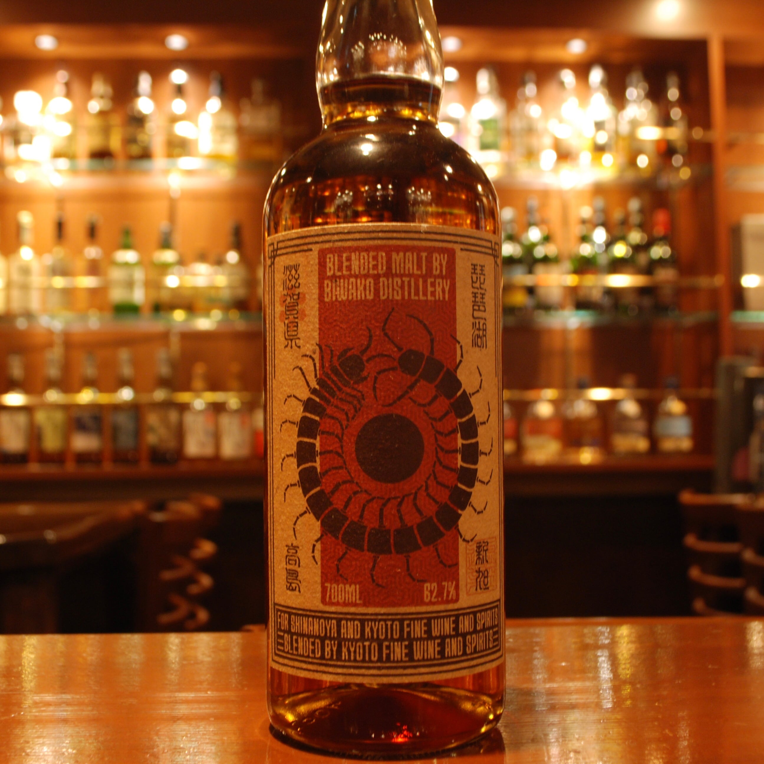 こちらは、オロロソシェリー原酒、アイラモルト空樽原酒を使用し、飲みごたえのあるシェリー&スモークを強く感じることが出来るモルトのみのブレンドレシピになっております。オリジナルラベルは、虚空坊主氏によるもので、滋賀の妖怪である大百足をモチーフにしました。